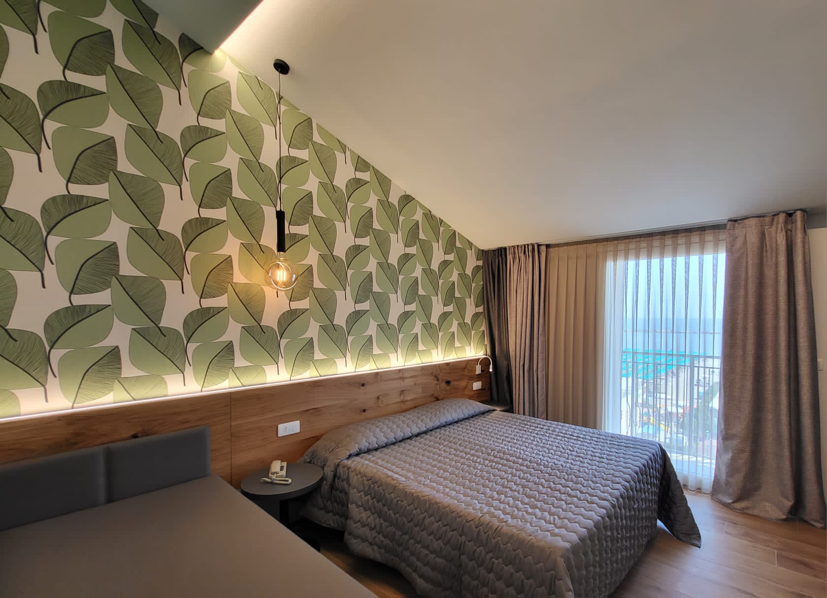 New Achievement at Hotel De La Ville in Cesenatico, featuring modern furnishings and expert use of wallpaper.